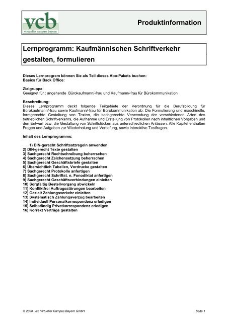 Produktinformation Lernprogramm Kaufmannischen Schriftverkehr