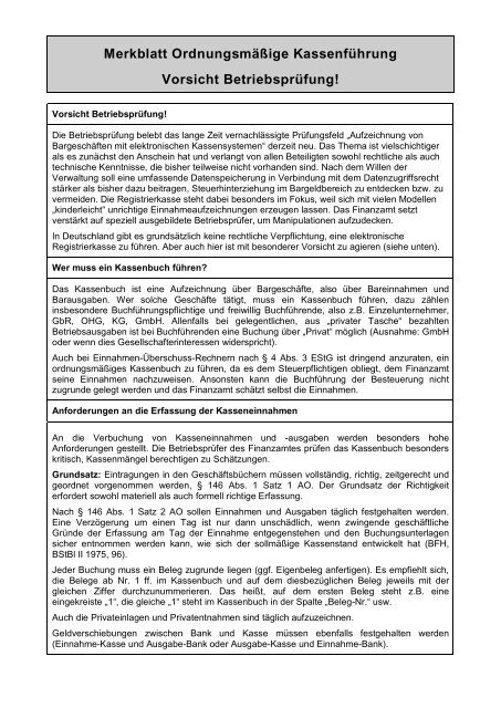 Merkblatt Ordnungsmassige Kassenfuhrung Vorsicht Betriebsprufung