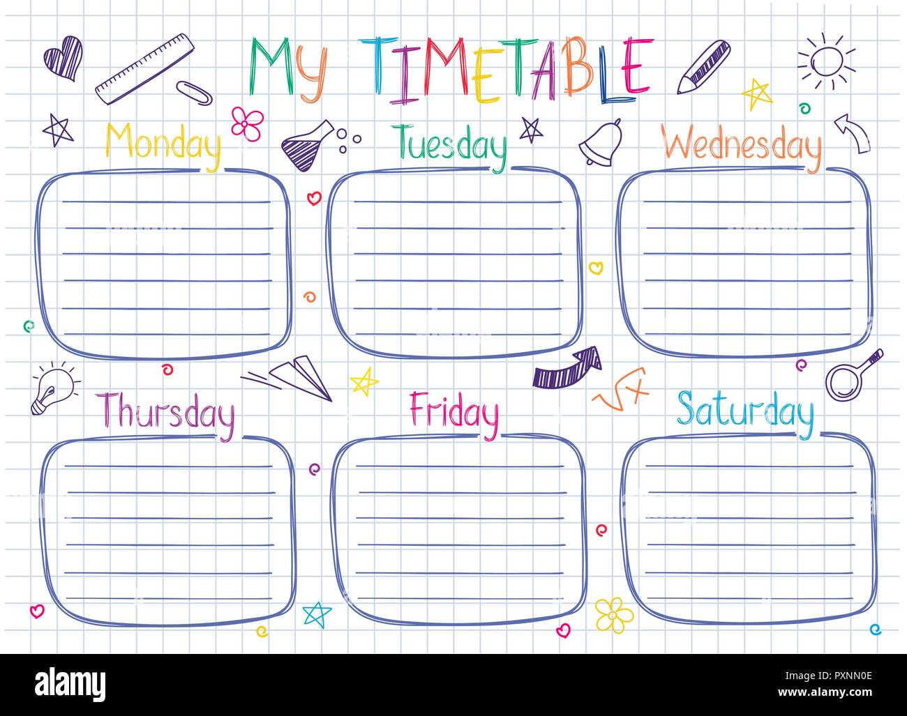 Schule Zeitplan Der Vorlage Auf Der Kopie Buch Blatt Mit Hand